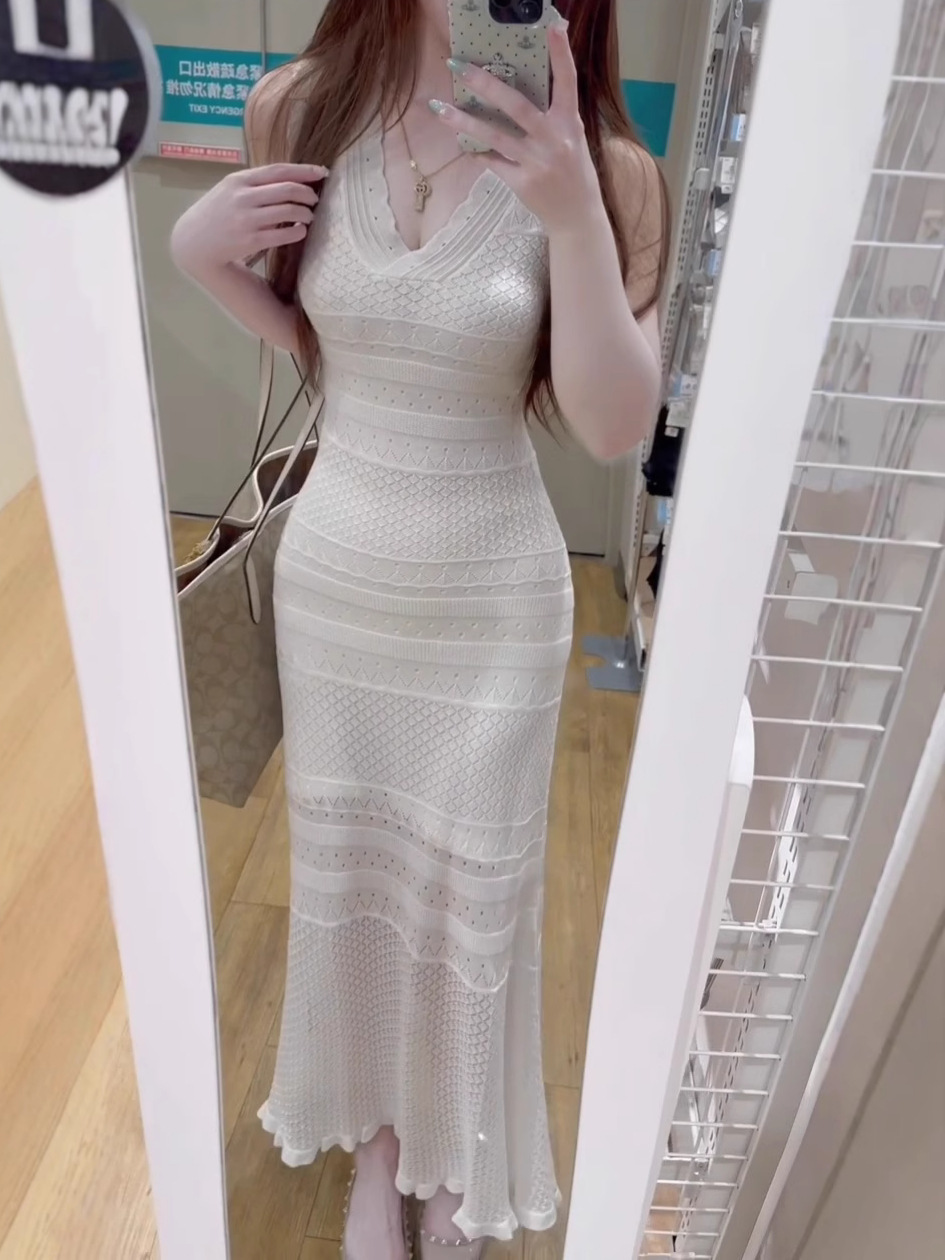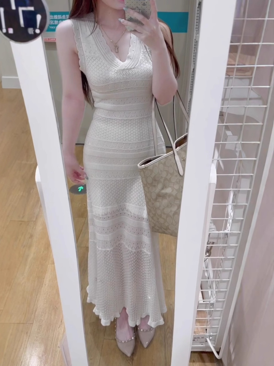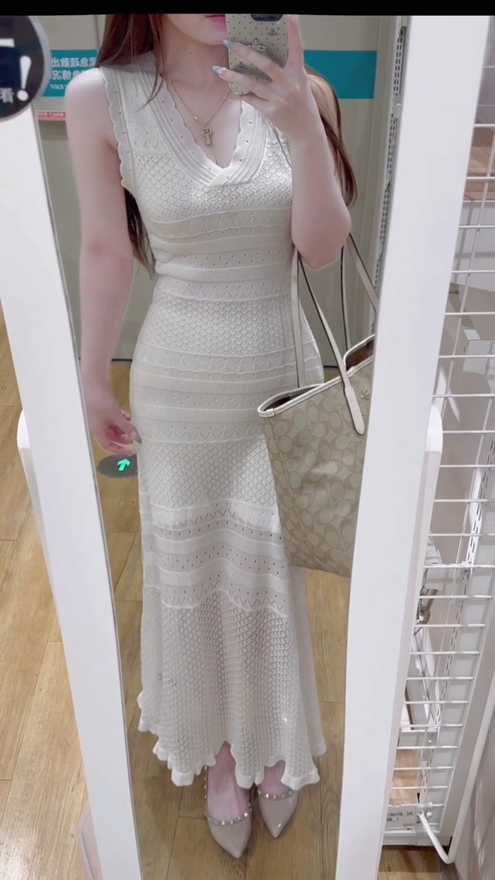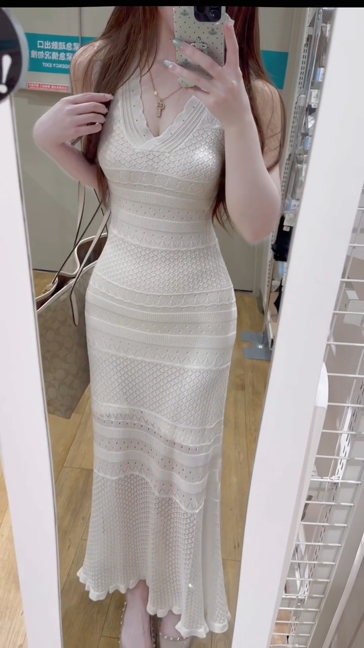 Chic Hollow Knit Dress, Sleeveless Long Dress